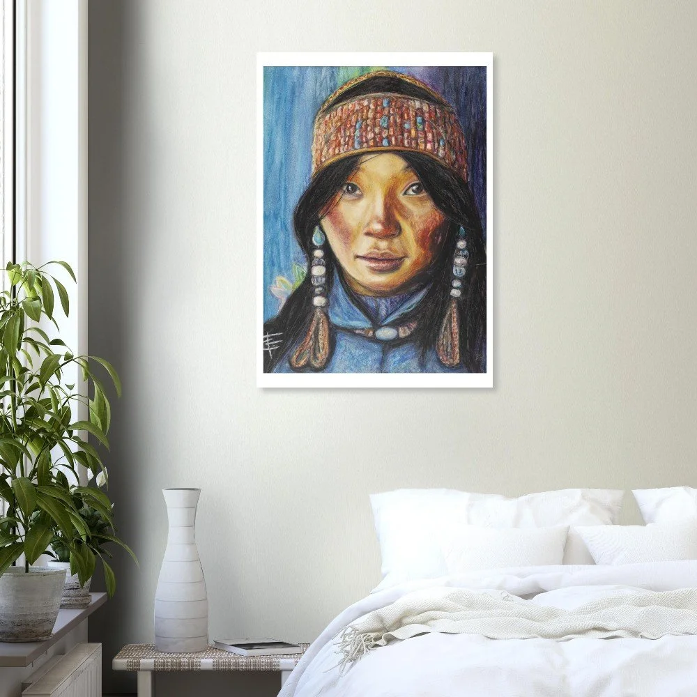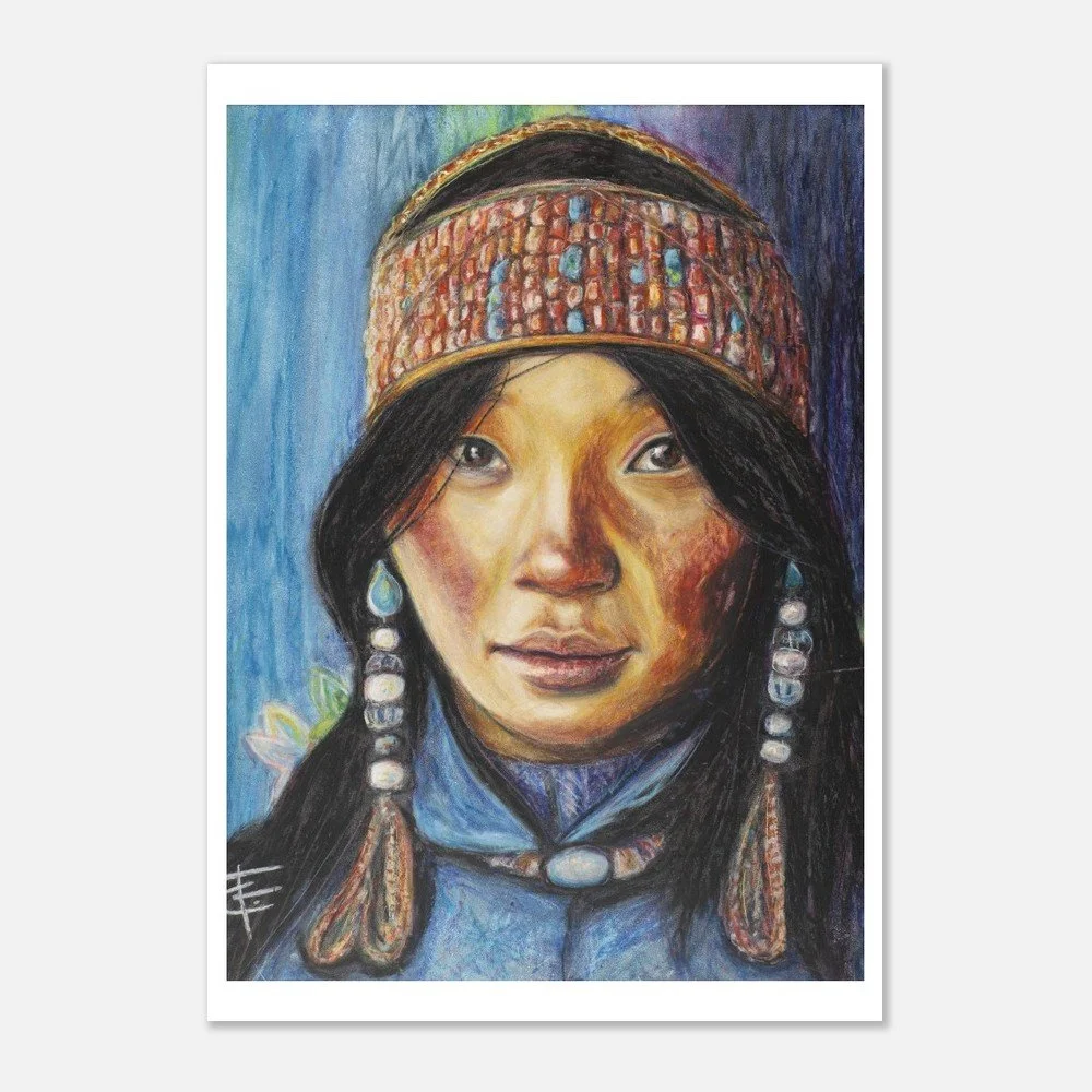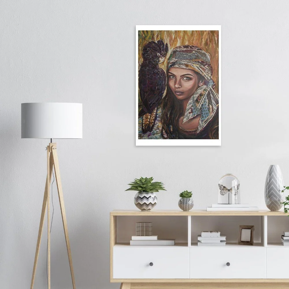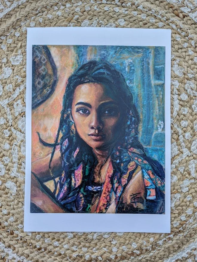 Fine art print. The original work was created using oil pastel on timber and is inspired by the beauty and strength of the Kenyan culture.