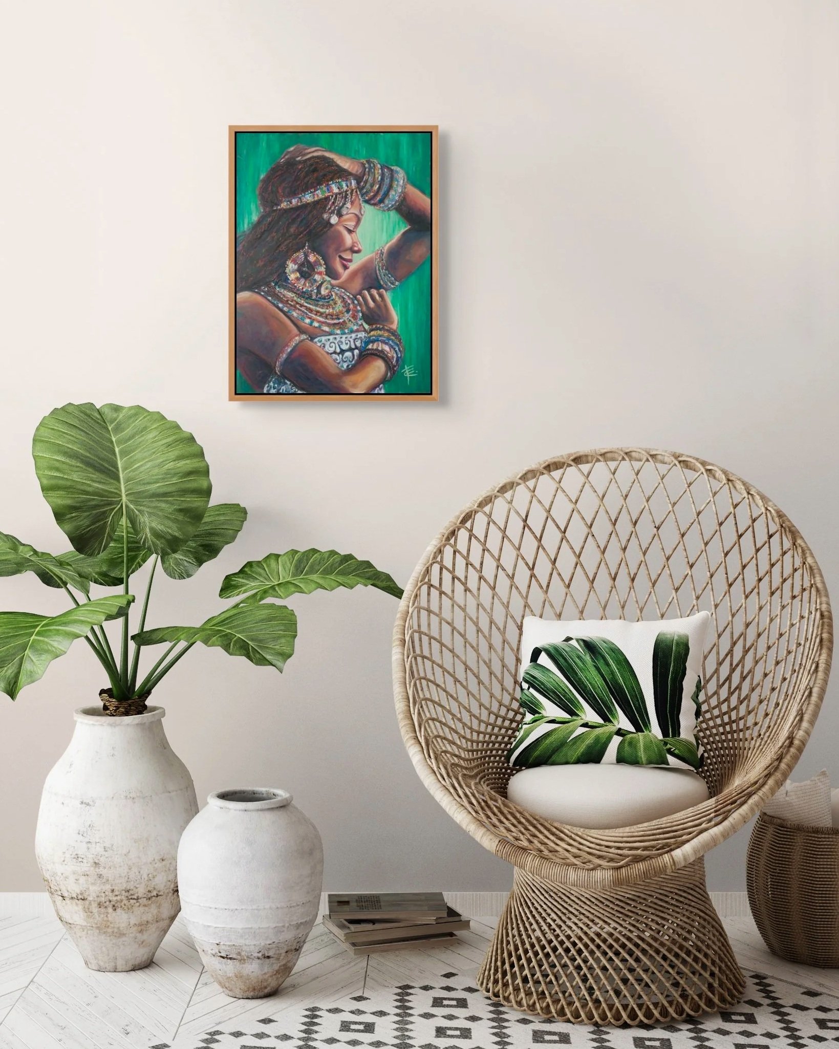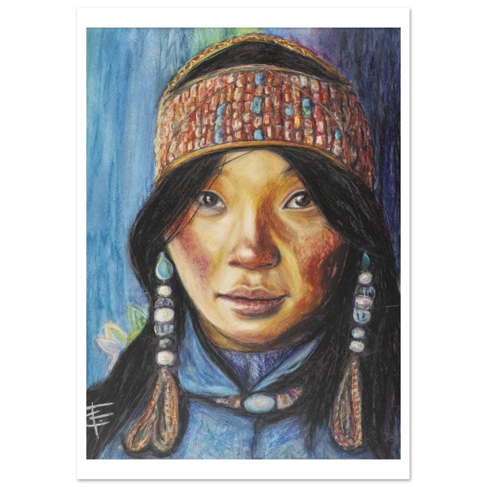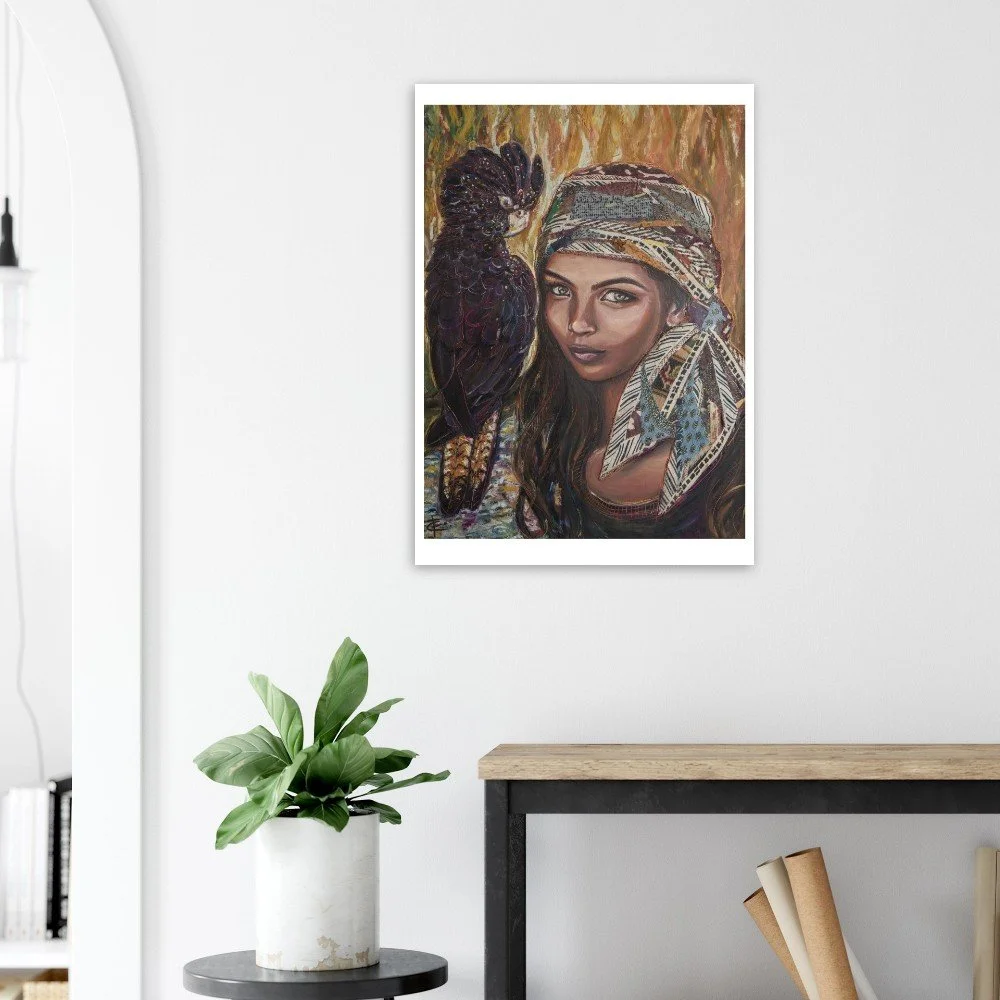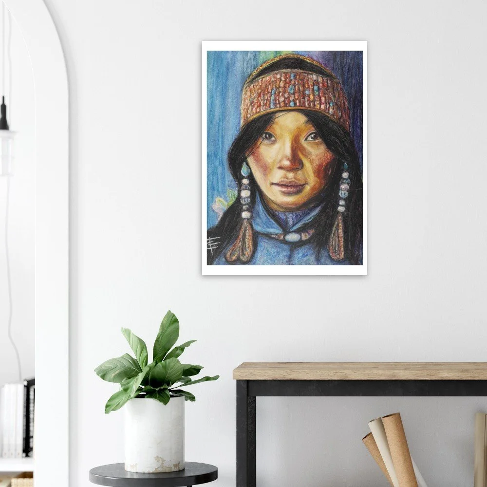Fine art print. The original work was created using oil pastel on timber and is inspired by the beauty and strength of the Kenyan culture.